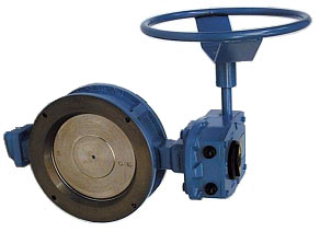 This wafer type butterfly valve is installed between flanges. The body material is cast carbon steel. Double eccentric disc and shaft are stainless steel. The shaft packing box is a combination of graphite rings and O-rings which are possible to tighten while in pipeline and are also replaceable.